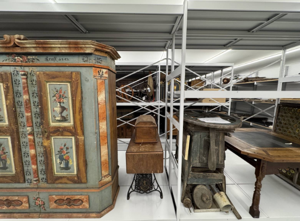 Das Museumsdepot der Stadt Bludenz hat eine turbulente Vergangenheit hinter sich. Nach mehreren Stationen in ungeeigneten Depot- und Lagerräumen befindet sich das Kulturgut der Stadt bzw. des Stadtmuseums Bludenz nun in den neuen Kellerräumlichkeiten der VS-Mitte. Mit geeigneten ausziehbaren Bilderwänden, platzsparenden Rollregalen, Planschränken für Großformatiges sowie Lastregalen für Schweres können die Objekte nun effizient und schonend gelagert werden. Als Schaudepot gedacht und konzipiert, wird durch das neue Depot eine Besichtigung der Sammlung möglich.