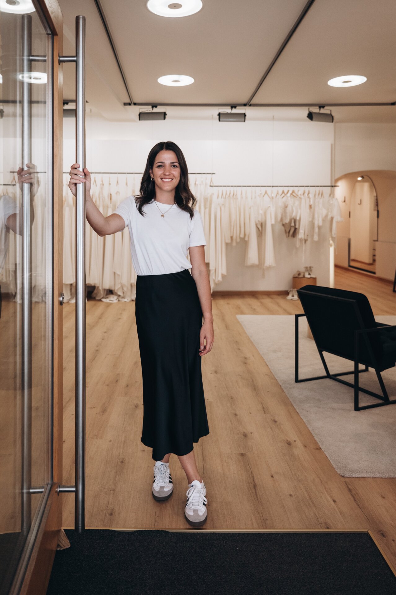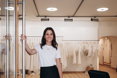 Heute bringt sie frischen Wind in die Bludenzer Modewelt. Mit ihren Maßanfertigungen – vor allem im Bereich Hochzeit – trifft sie einfach immer jeden Geschmack. Zwischen fein, mutig und echt. Ihre Kleider entstehen im Austausch, im Zuhören, im gemeinsamen Entwickeln. Und sie tragen immer ein Stück Persönlichkeit.