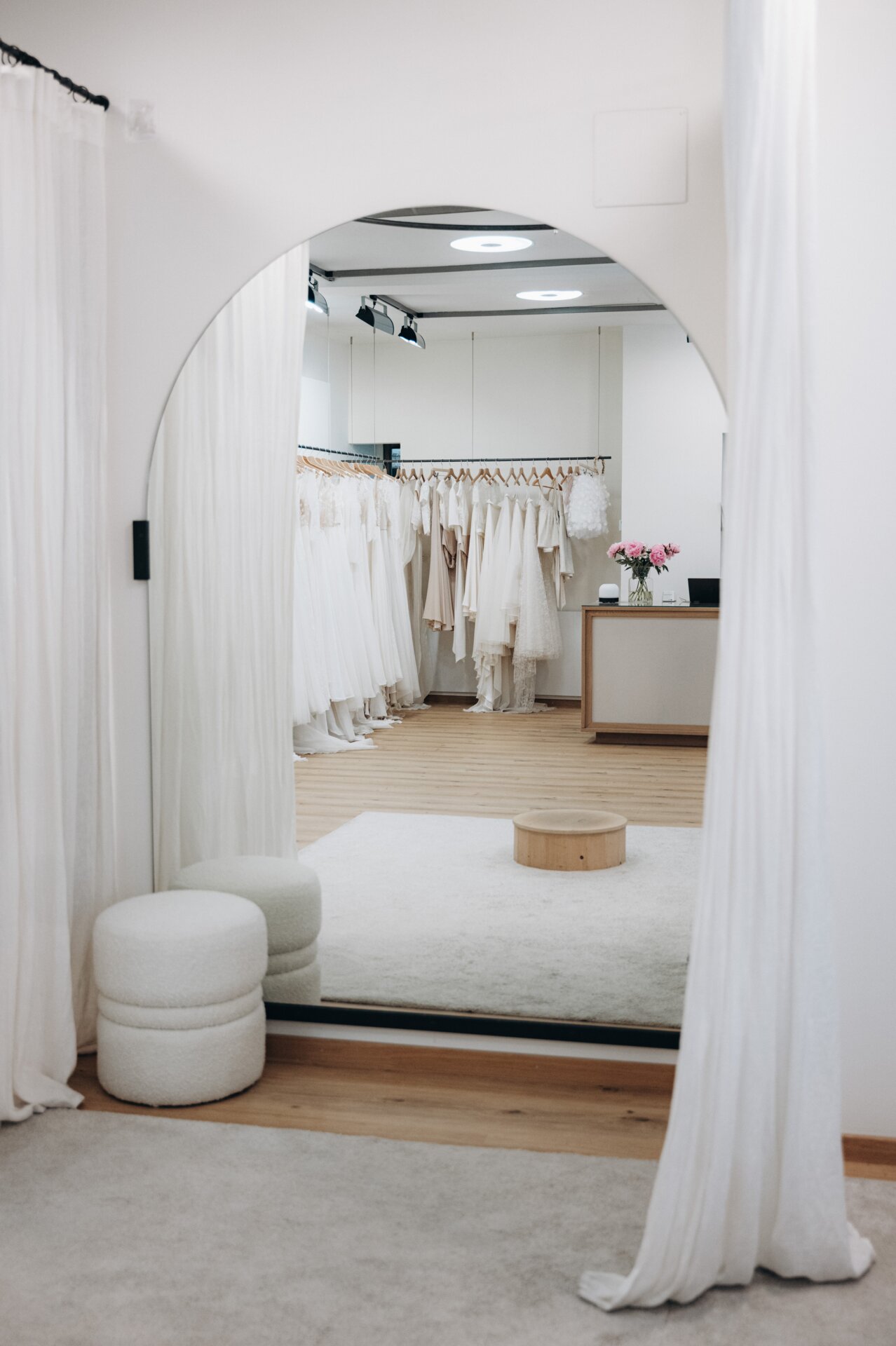 Das ist Carmen Müller. Und wer sie einmal kennengelernt hat, weiß: Diese Frau hat ein Gespür. Für Stoffe. Für Menschen. Für das, was an einem besonderen Tag, wie dem Hochzeitstag wirklich zählt und worauf es auch tatsächlich ankommt. Eigentlich war sie auf dem Weg in den Kindergarten – doch das Leben hatte andere Pläne mit der angehenden Kindergärtnerin. Es hat sie nach Wien geführt, zur Ausbildung als Damenkleidermacherin. Und danach? In der Schneiderei der Firma Elfenkleid (welche Marke sie übrigens bis dato exklusiv in ihrem Atelier zusätzlich verkauft) – war plötzlich klar: Genau das ist es.