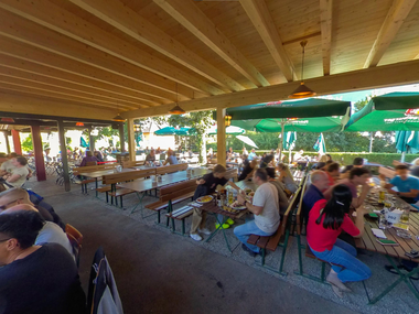 Auch Gruppen sind herzlich willkommen – drinnen wie draußen im sonnigen Gastgarten.