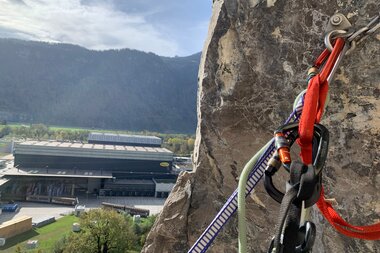 "Rope? Check! Climbing harness, shoes, helmet, quickdraws? It's all there!" The enthusiasm is palpable as we make our way to the Hängender Stein climbing garden in Nüziders, equipped to the tips of our toes. We are greeted by a cool, clear June morning, the perfect invitation for a climbing adventure.