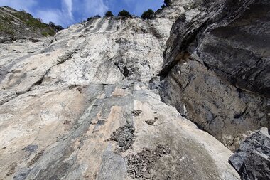 The short trip from Bludenz to Nüziders already reveals the imposing "Köpfle" from afar, a landmark of the climbing garden that stretches boldly and freely into the sky. A small flag can be seen on its top - a destination that beckons from afar, but can only be reached via multi-pitch routes.