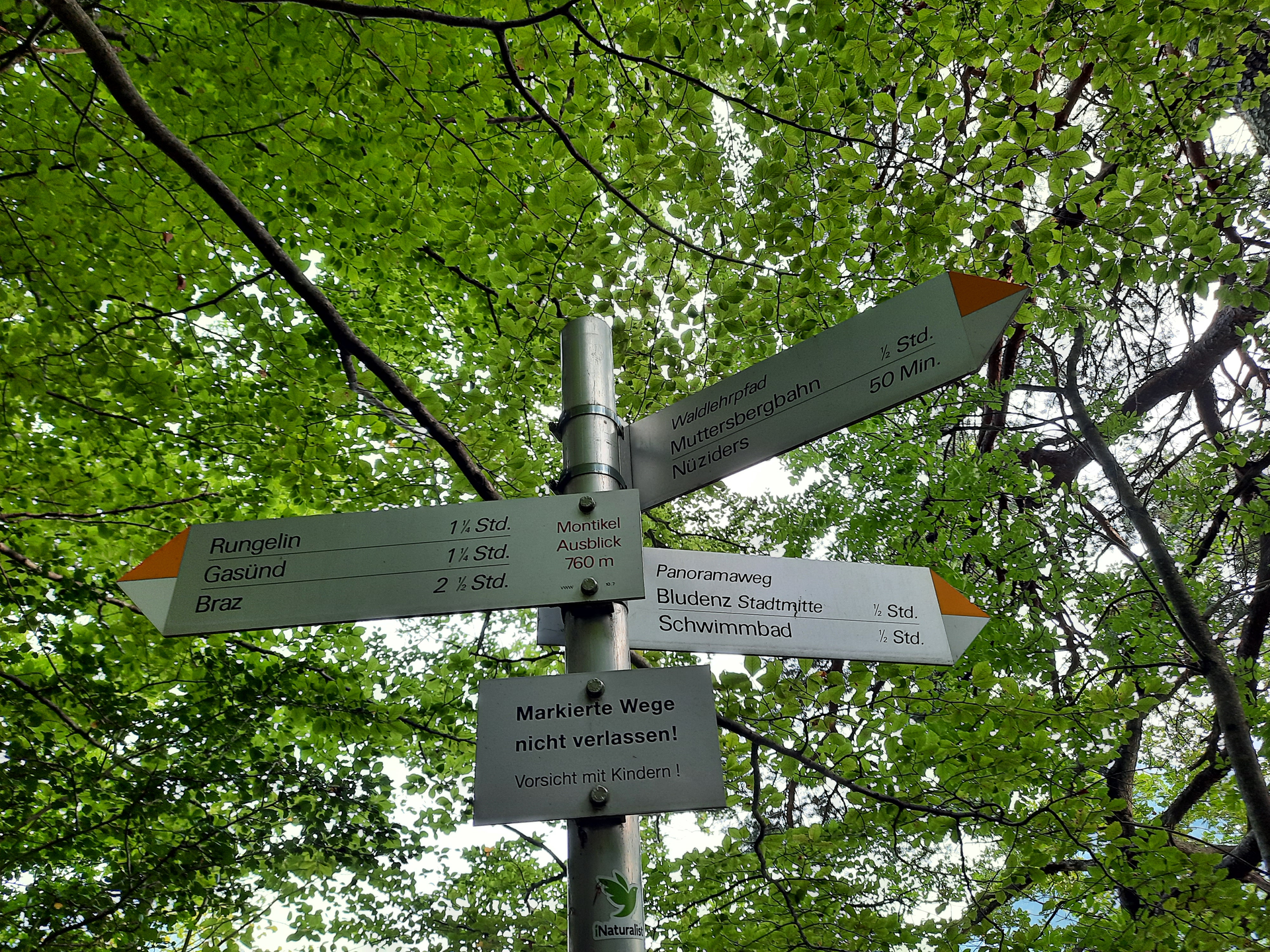 This tour starts near the St. Laurentius church at the stop "Bludenz Krankenhaus". Here the hiking trail leads past the Bludenz Social Center and thus immediately joins a forest path. Following the forest path, you will reach the Montikel via several small hairpin bends. On the Montikel, numerous benches and viewing points await you, where you can enjoy the breathtaking panorama of Bludenz. Follow the hiking trail further towards Rungelin and enjoy the views over the city. At a fork in the road, follow the sign towards "Halde" and descend into the Halde district. At the junction with the road "Haldenweg" keep to the right and walk past the Val Blu leisure pool in the direction of the town center. Alternatively, take the bus back to the town center.