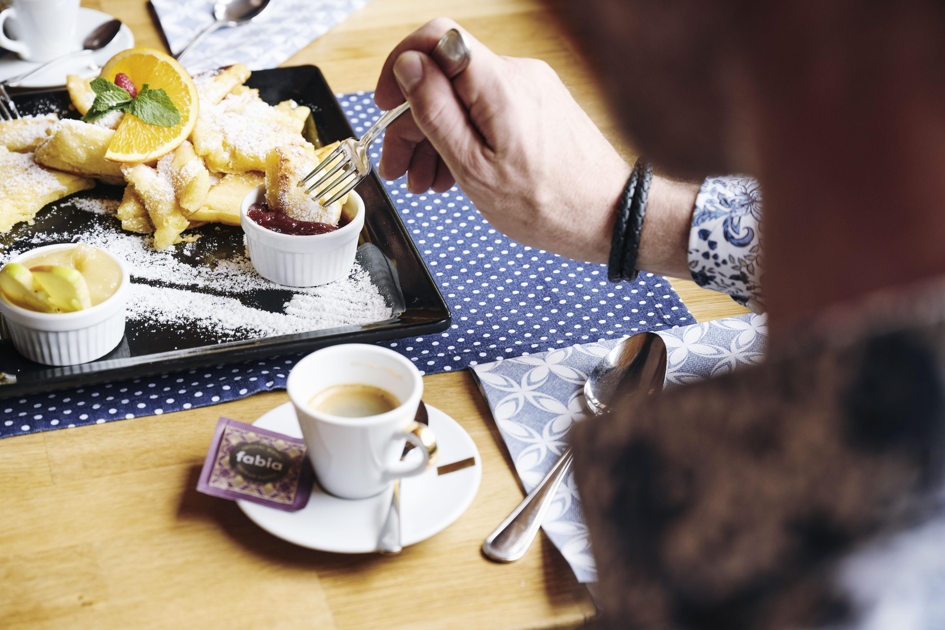 Regionale und internationale Gerichte werden frisch zubereitet und abends verschiedene Cocktails gemeinsam mit den Köstlichkeiten aus Küche und Keller serviert. Durchgehend warme Küche bis 21:00 Uhr.