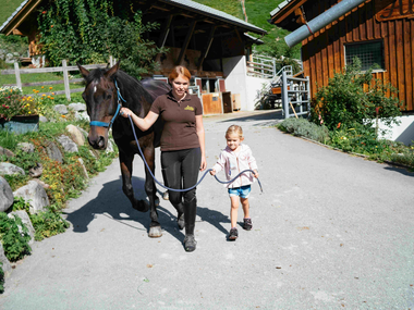 Einen bereichernden Vormittag auf dem Pferdehof Alpenrose in Brand verbringen, wo das Zusammenleben der Tiere erlebbar wird: Beim Füttern und bei der Pflege der Bauernhoftiere helfen, Ponys putzen und Pony reiten stehen auf dem Programm.