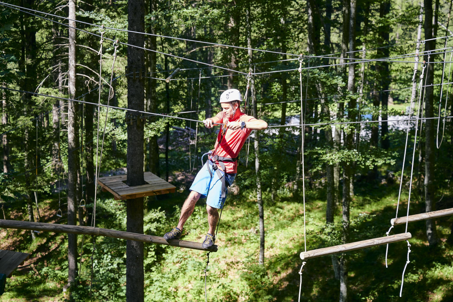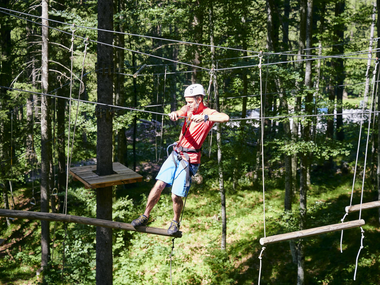 Echte Herausforderungen für mutige Kletterfans. Die Parcours bieten verschiedene Abenteuer für Anfänger:innen und Fortgeschrittene. Dich erwarten tolle Flying Fox Stationen und verschiedenste Seil- & Brückenkonstruktionen auf einer Länge von 500 Metern. Ein unvergessliches Erlebnis in der Natur, das Geschicklichkeit und Mut erfordert.
