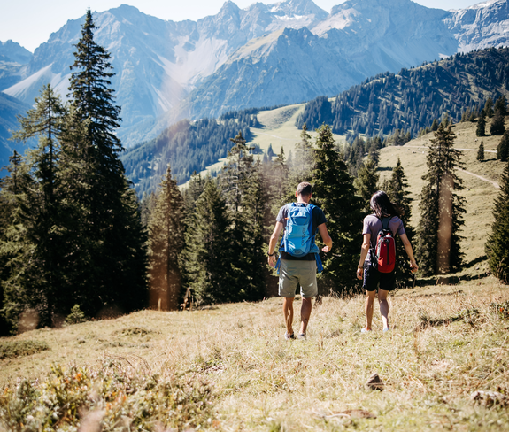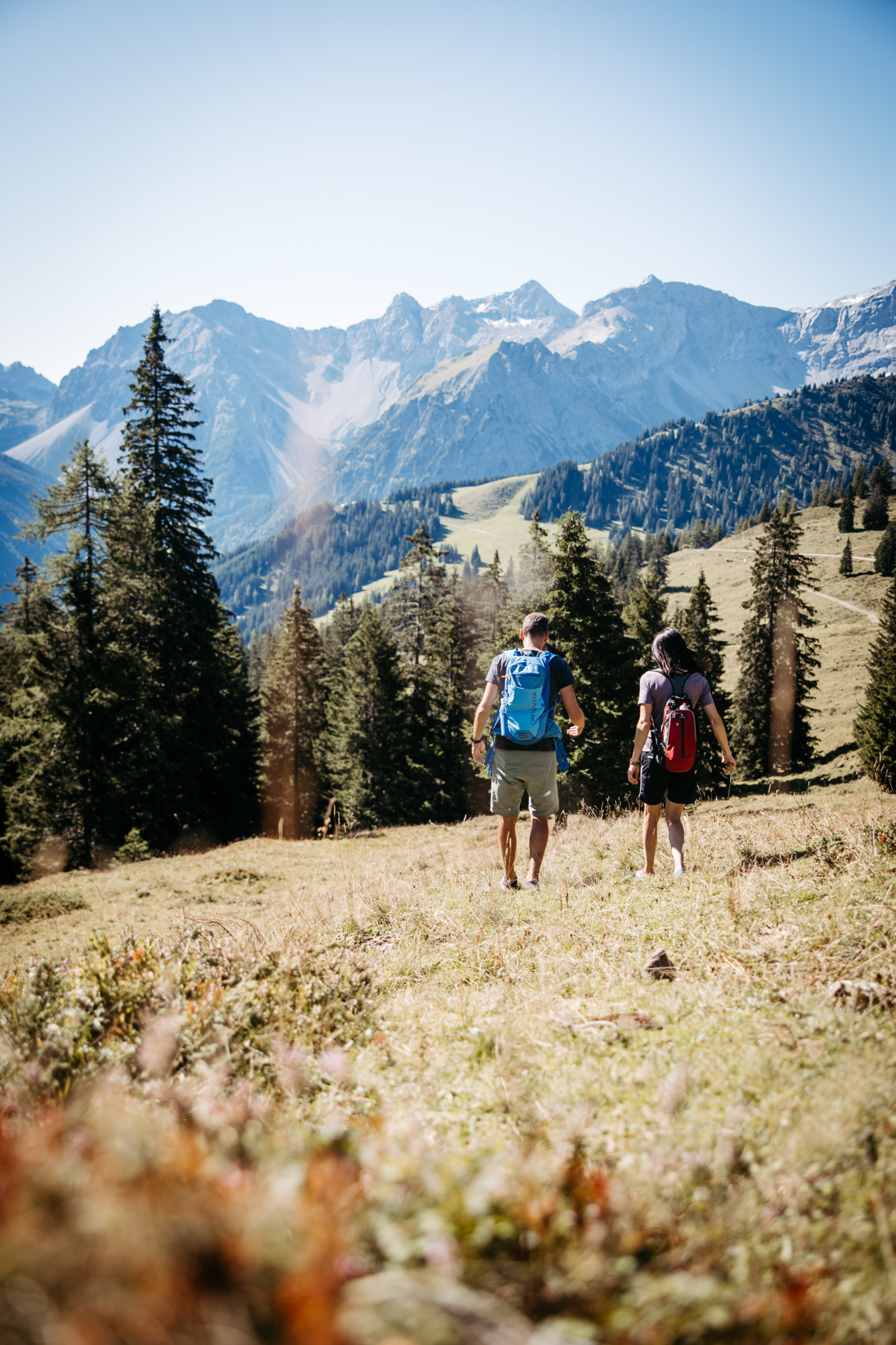 Nach dem ersten kulinarischen Höhepunkt geht es nun weiter Richtung Palüd. Unterwegs genießt Du sagenhafte Ausblicke auf die umliegenden Berge und entdeckst entlang des Natursprünge-Wegs Geheimnisse der alpinen Natur und ihren Bewohnern. Beim Parpfienzsattel zweigt der Weg links Richtung Innere Parpfienzalpe ab. Bitte beachte: Dieser Streckenabschnitt ist zugleich Mountainbikestrecke. Bitte wandere auf diesem Wegabschnitt am Wegesrand und achte auf talwärtsfahrende Mountainbiker. An der Inneren Parpfienzalpe führt der Güterweg vorbei und von da an hinauf zum Niggenkopf. Ab hier geht es auf einem einfachen Waldweg Richtung Palüd und weiter zum Alpengasthof Melkboden.
