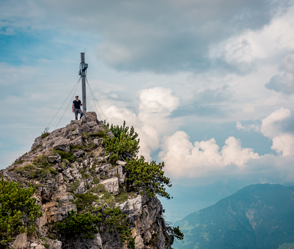 Auf den letzten Metern Richtung Gipfel dient ein gespanntes Stahlseil zur Sicherung, hier ist Trittsicherheit und Schwindelfreiheit Voraussetzung. Oben eröffnet sich Dir ein sagenhafter Ausblick auf die umliegenden Berge und Täler.