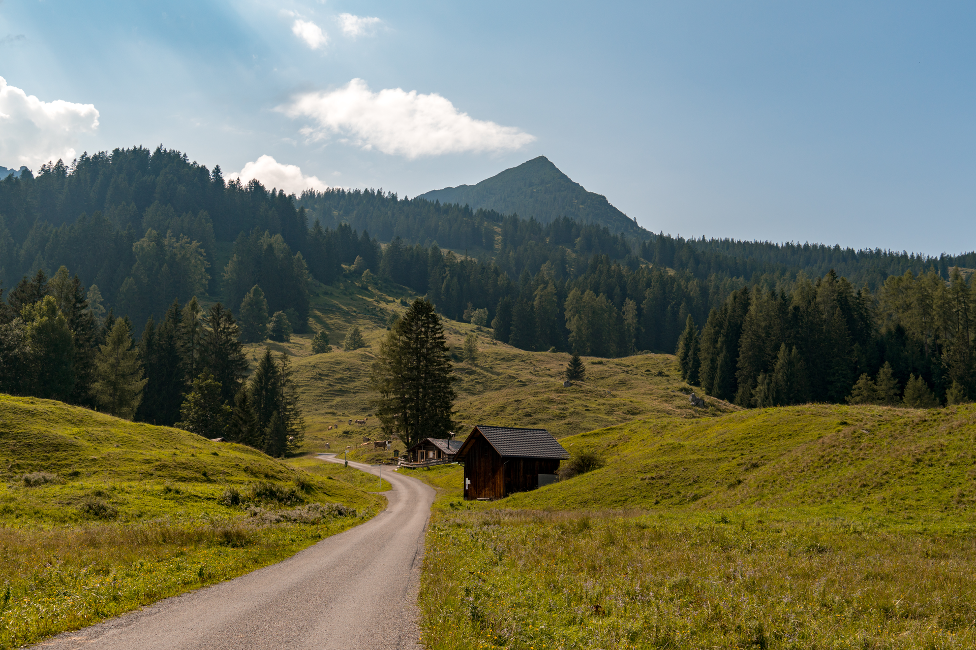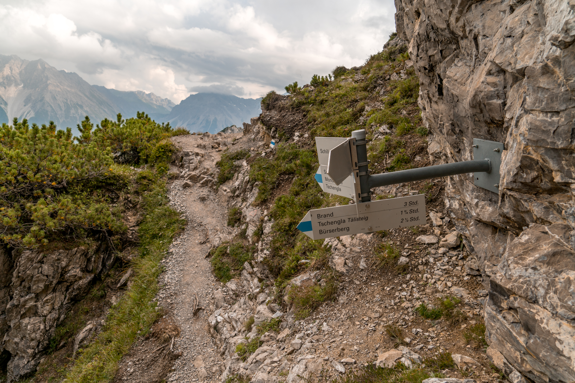 Starte diese Bergwanderung beim Wanderparkplatz Tschengla. Von dort aus folgst Du ein kurzes Stück dem Güterweg und dann weiter auf dem Wanderweg über Alpwiesen und Wälder hinauf Richtung Schillersattel. Der Wanderweg quert immer wieder den Güterweg "Alte Statt" bevor Du den Anstieg zum Schillersattel in Angriff nimmst.