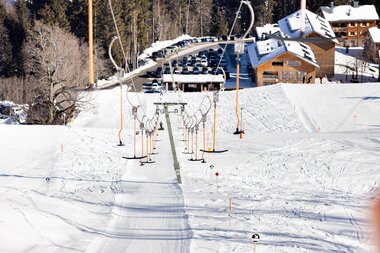 A highlight for beginners can be found in the Palüd section of the ski area. There is a public conveyor belt right next to the top station of the Palüd gondola lift. With a valid ticket for the Palüdbahn, the Wonder Carpet can be used free of charge. For safety reasons, the area is fenced off and particularly flat. Ideal conditions for your first turns in the snow. Refreshment stops such as the Gasthof Melkboden or the self-service restaurant Goona are just a few steps away.