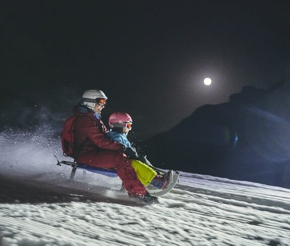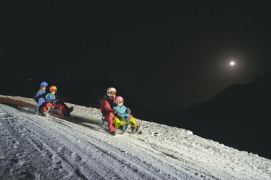 But the way down into the valley is imminent. So put on your helmet, slip into your gloves and set off. If you prefer a more leisurely ride, take the cable car back to Brand. Max, who leads the night toboggan safari to Bürserberg, is waiting for the adventurous. Equipped with headlamps, the brave night owls trudge towards Furkla, before whooping and hollering as they hurtle down into the valley. Brave night tobogganists can also let the evening draw to a close in Brand - from the mountain station of the Dorfbahn cable car, the illuminated hairpin bends lead down to the village.
