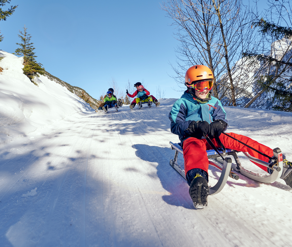 Great tobogganing fun for young and old and easy to reach with the Dorfbahn cable car in Brand.
