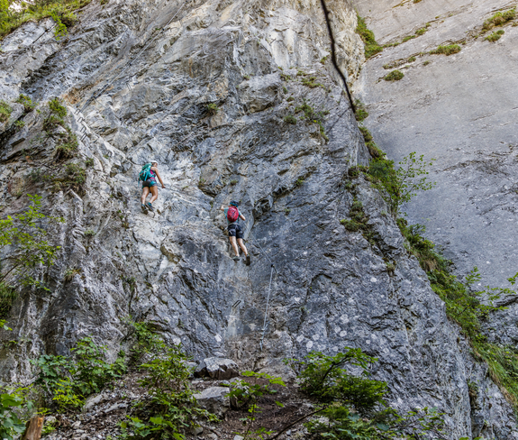 A good opportunity to make the first climbing moves in the new summer season has recently been offered by a via ferrata in Brandnertal. Only a few steps away from the town center of Brand and the Brandnertal climbing park, it leads 80 meters and 60 vertical meters up a rock slab. The ascent from the Kellenegg goods path takes just under 15 minutes: that's almost luxury for via ferrata climbers.
