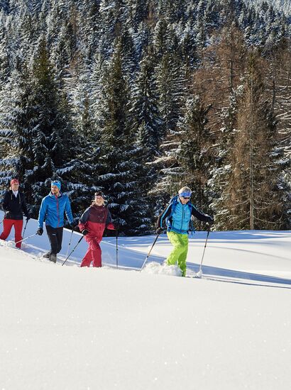 Wenn keine Spuren vorhanden sind (bspw. bei Neuschnee) bzw. bei zu geringer Ortskenntnis empfehlen wir, an einer geführten Schneeschuh-Tour teilzunehmen. Unsere erfahrenen Berg- und Wanderführer:innen begleiten Dich sicher durch die Winterlandschaft und haben einige abenteuerliche Geschichten auf Lager.