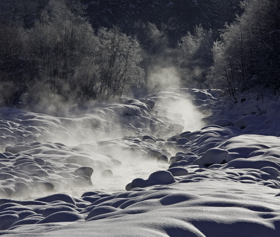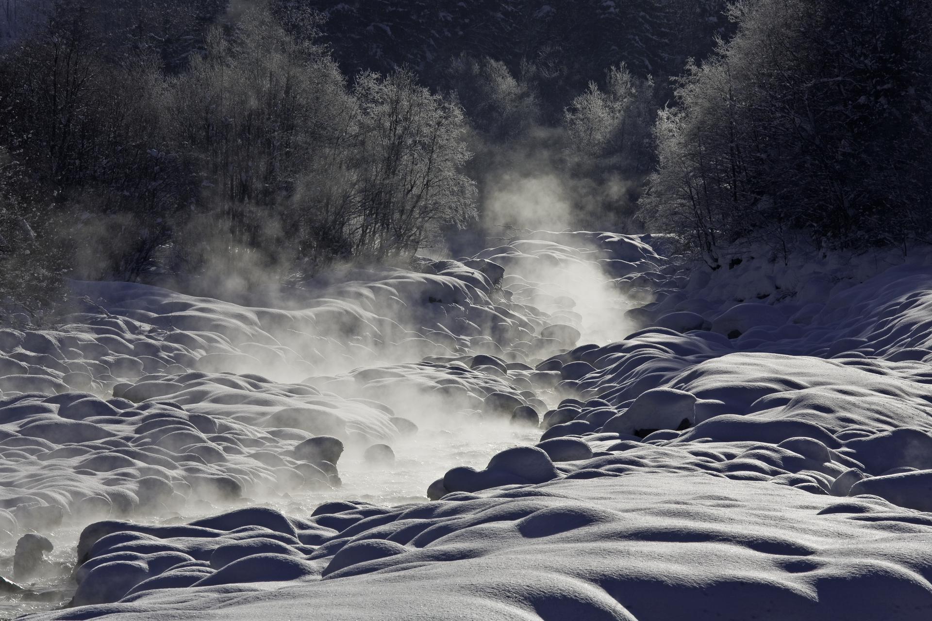 Leichte Winterwanderung entlang der winterlichen Alfenz in Braz.