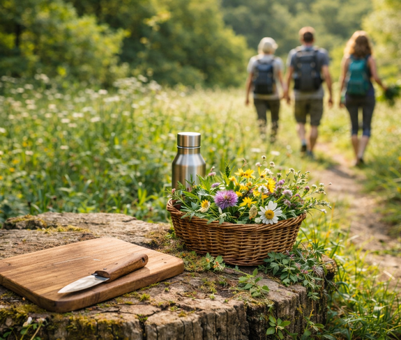 Wir erkunden die Pflanzenwelt am Montikel. Die Kräuterpädagogin Angelika möchte den Teilnehmenden vermitteln, dass mit der richtigen Wahl an Bitterkräutern besonders wohlschmeckende Mahlzeiten zubereitet werden können. Wir stellen selbst Butter her und verfeinern eine einfache Mahlzeit mit dem kostbaren Sammelgut der Wildkräuter.