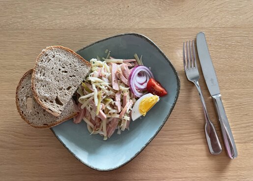 8. Am besten schmeckt der Salat mit frischem Schwarzbrot.