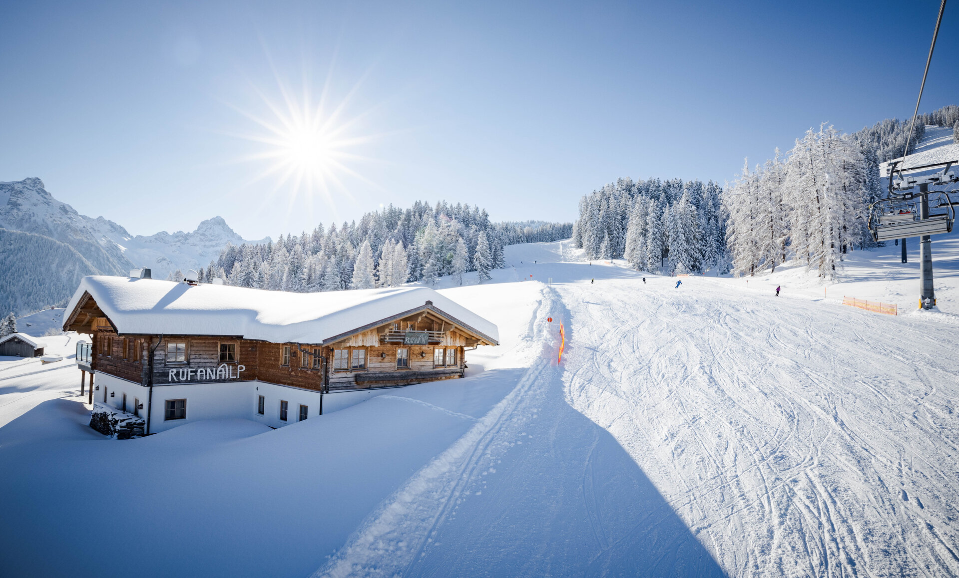 The insider tip for deep snow fans! On the Sonnenkopf, 31 kilometers of natural snow slopes and the alpine coziness that makes a winter day special await you. Between the groomed slopes, you'll find plenty of space to let off steam in the powder. Freeriders can also look forward to an adventurous deep-snow descent into the Nenzigasttal.