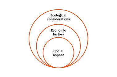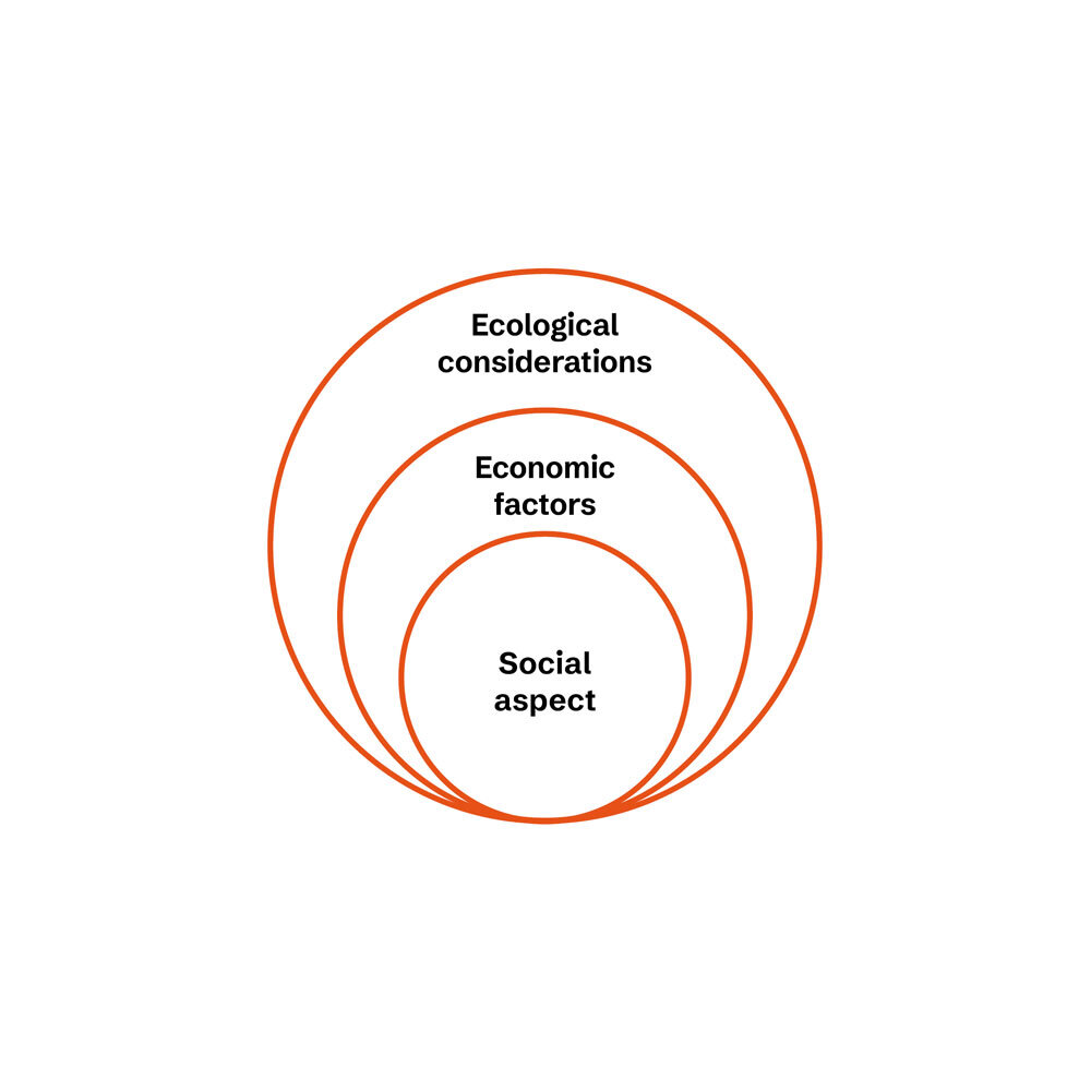 The priority model of sustainability represents a clear hierarchy between the three pillars of sustainability - ecology, social affairs and economy. The protection of natural resources has top priority, as an intact environment forms the basis for social well-being and economic activity. The social dimension follows with the aim of ensuring justice, education and quality of life for all. The economy is understood as a serving system that operates within ecological and social limits. This model emphasizes that only action in harmony with nature and the needs of society is sustainable in the long term.