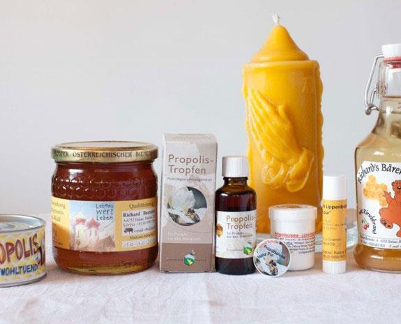 Herr Burtscher Richard bietet Ihnen verschiedene selbstgemachte Propolisprodukte an. Hier erhalten Sie, Propoliscremen und Tinkturen sowie Lippenbalsam und Zuckerl.