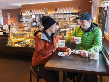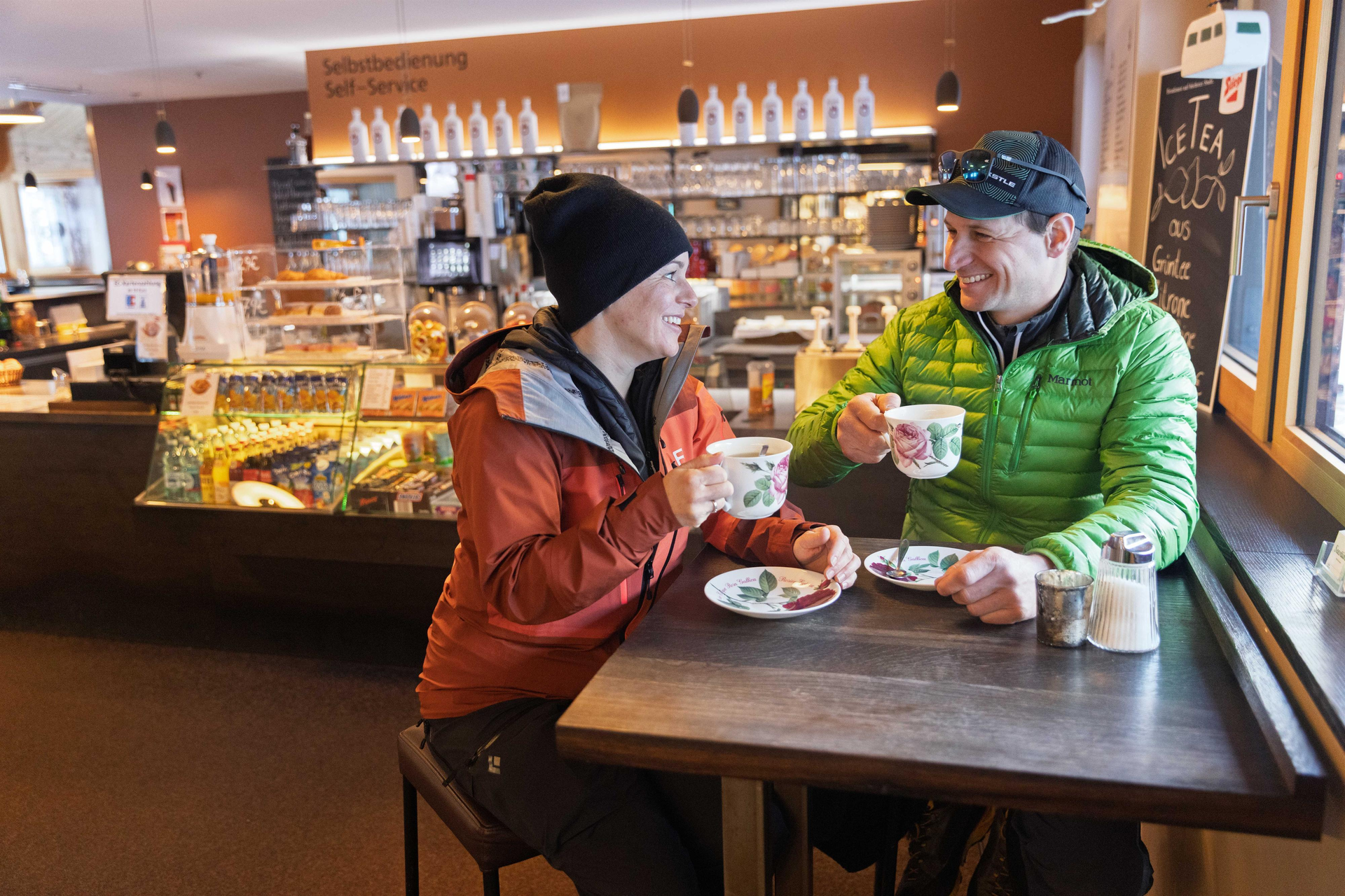 Das Alpinbistro befindet sich direkt neben der Talstation der Sonnenkopfbahn, im Gebäude vom Intersport (Skiverleih-Depot-Service-Sportshop). Gemütliche Sitzecken und unsere Bar laden dazu ein, sich bei wärmenden Kaffee oder Tee-Spezialitäten auszuruhen oder sich mit Freunden zum Frühstück oder Aperetif zu treffen. Große Auswahl an Snacks, warmen Speisen, Getränken und Süßwaren. WLan gratis - LED-TV auf Großbildschirm, Sonnenterrasse.