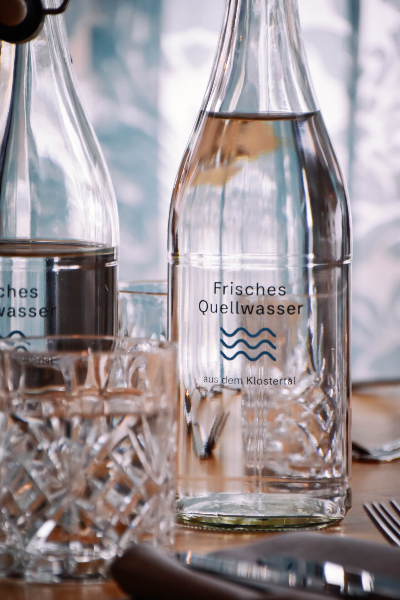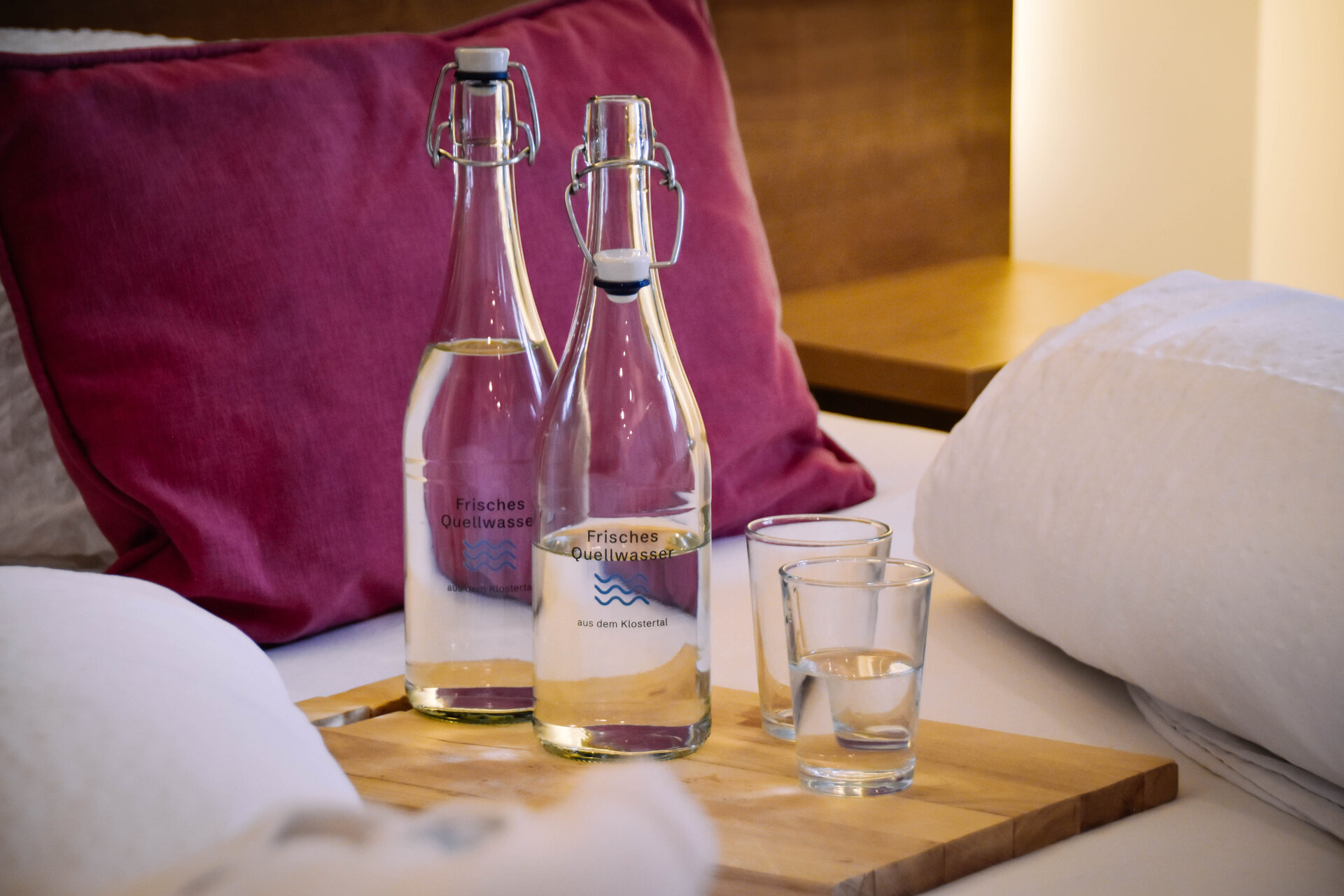 Diese Flaschen sind nicht nur praktisch, sondern auch ein Bekenntnis zu Umweltbewusstsein. Gefertigt aus veganen, schadstofffreien Materialien, sind sie spülmaschinenfest, auslaufsicher und bewahren den reinen Geschmack des Wassers. Diese Entscheidung unterstützt nicht nur die Umwelt, sondern ermöglicht es Dir auch, das frische und unverfälschte Wasser des Klostertals in seiner reinsten Form zu genießen.