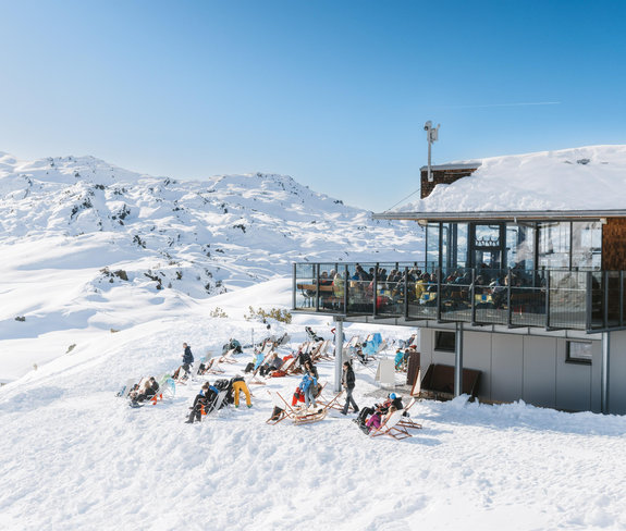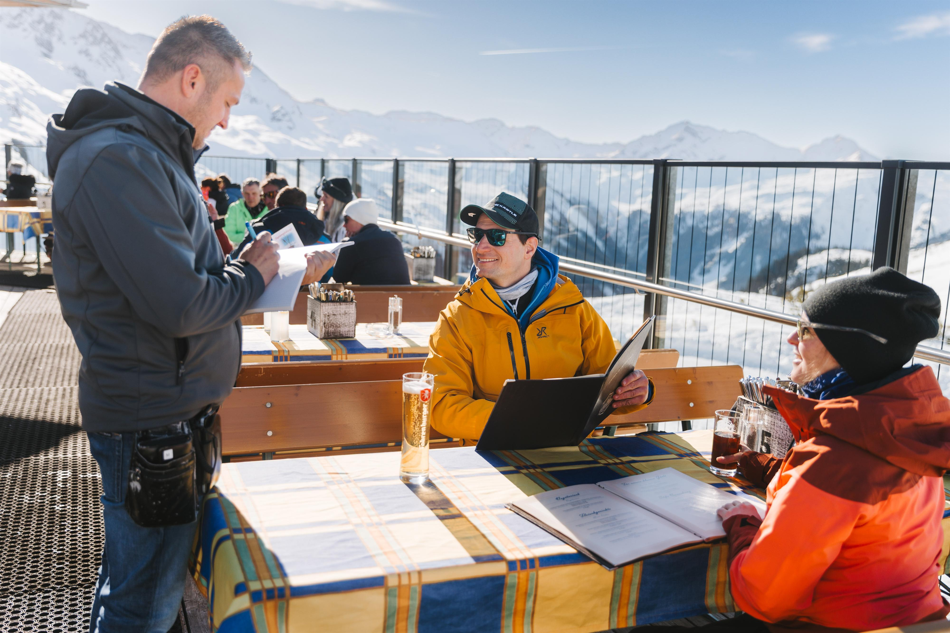Atemberaubend die Aussicht – excellent die Küche! Genieße die Spezialitäten auf höchstem Niveau, begleitet von hervorragenden Weinen. Bei schönem Wetter bedienen wir Dich auch auf der einladenden Sonnenterrasse - ein doppelter Genuss. Das Restaurant ist auch zu Fuß erreichbar und zwar auf dem Winterwanderweg zum Muttjöchle.