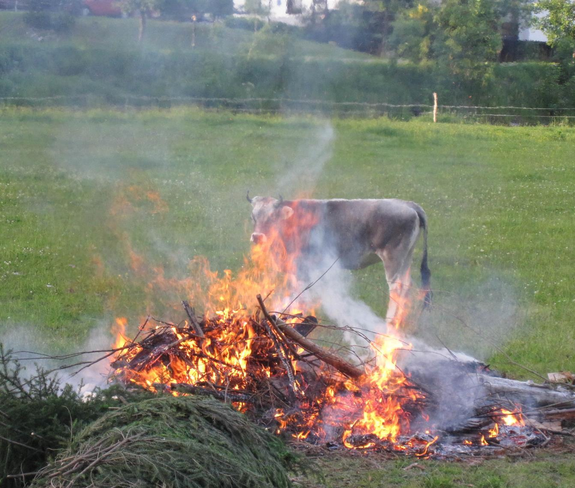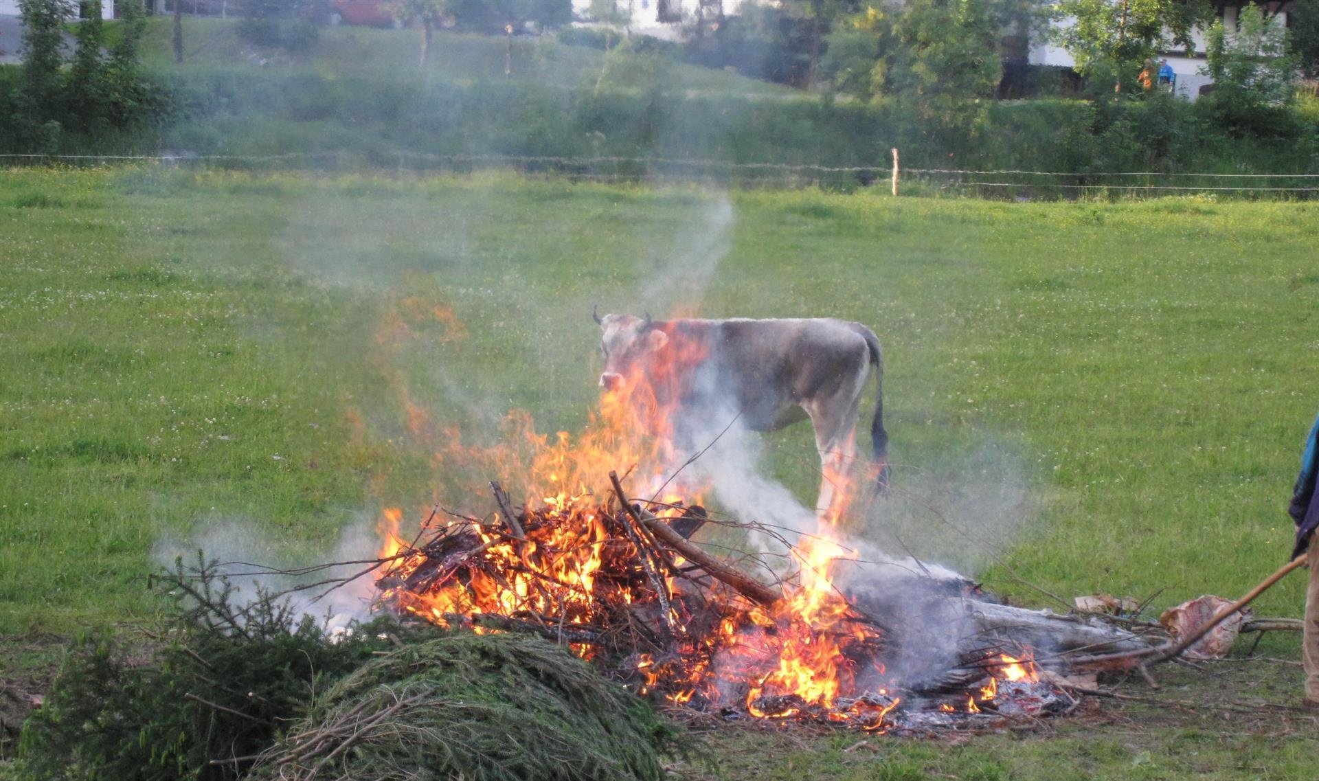 Zu Ehren des Kirchenpatrons "Johannes dem Täufer" wird im Beisein von Herrn Pfarrer Mag. Ernst Ritter im Schattenhalb (Nähe des Kreuzes) das Johannes-Feuer entzündet.