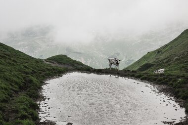 Am Ende des Zugertals, nahe dem Formarinsee, liegt die Alpe Formarin. Vor der Alphütte auf 1.871 Metern Seehöhe entspringt der 125 Kilometer lange Lech, der auch Ausgangspunkt des Lechwegs ist – ein Wanderweg, der die Wandernden auf eine besondere Reise entlang des Flusses mitnimmt. Tagsüber herrscht reger Betrieb durch Wandernde und Biker:innen, doch trotz des Andrangs bewahrt die Alpe ihren Charme.
