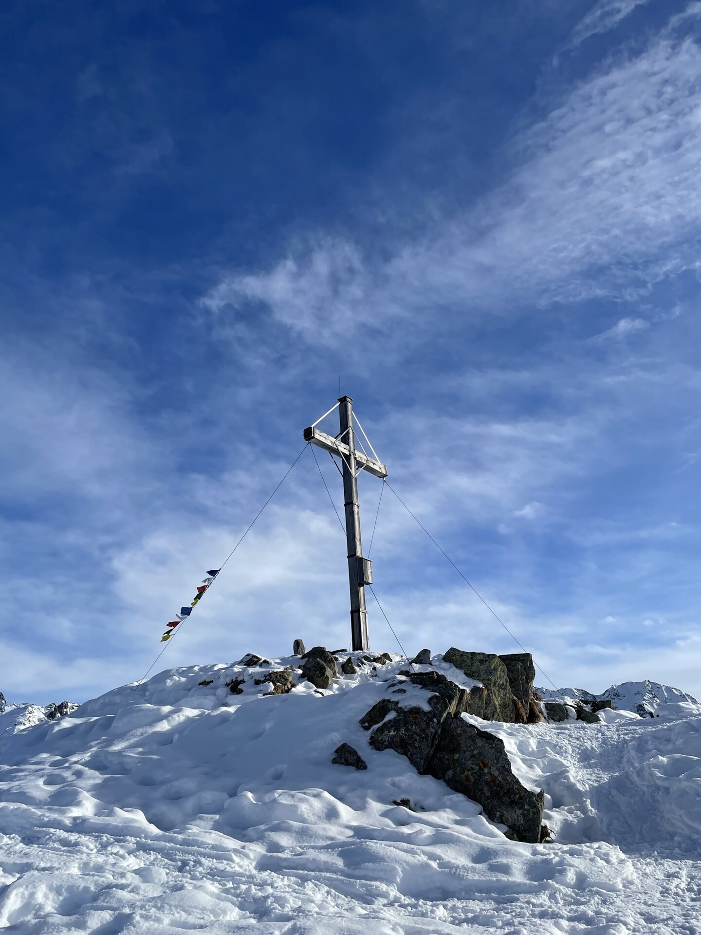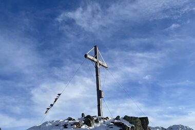 Mit jedem Schritt weitet sich der Blick auf die umliegenden Berge – in Richtung Arlberg, Lechquellengebirge und Verwall. Als ich schließlich den Gipfel auf 2.078 Metern Höhe erreiche, atme ich tief durch und genieße es, hier zu sein.