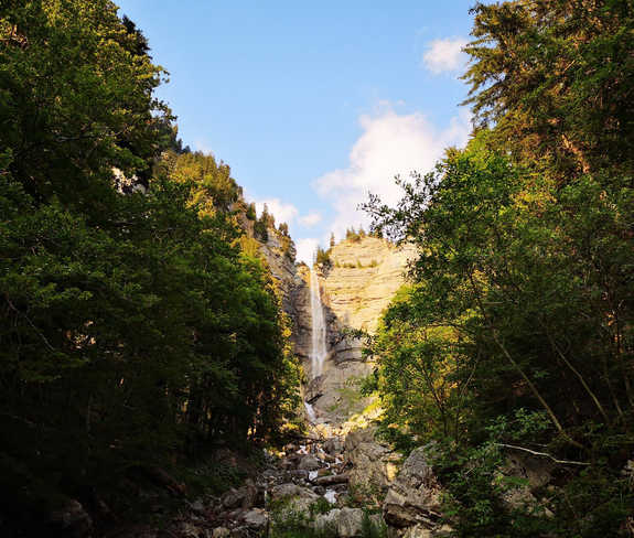 Der Masonwasserfall - ein Naturdenkmal in Braz im Klostertal - weist eine Fallhöhe von 80 Metern auf. Der Wasserfall wird gespeist von der Masonbachquelle, die ca. 300 Meter hinter dem Wasserfall auf der Masonalpe entspringt.