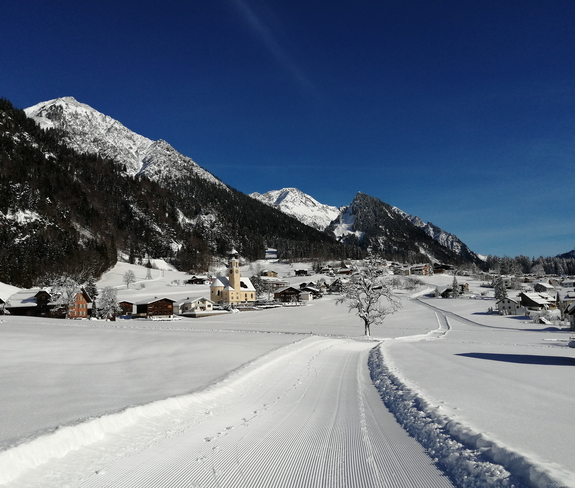 Kurzer Winterwander-Rundweg in Ortsteil Außerwald in Wald am Arlberg.
