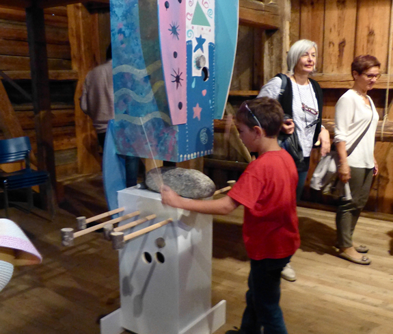 Station 3: Bemaltes Holzobjekt von Alois Lindenbauer