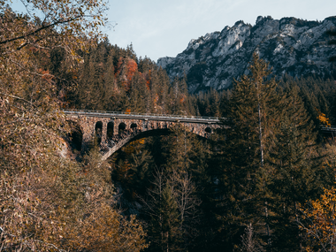 Die 1880 bis 1884 erbaute Arlbergbahn besticht durch ihre Kunstbauten. Aufgrund der naturräumlichen Voraussetzungen im Klostertal und Stanzertal mussten zahlreiche Brücken, Tunnels und Viadukte angelegt werden. Diese prägen heute das Landschaftsbildung in besonderer Art und Wiese. In Klösterle ist gerade die Wäldletobel-Brücke aufgrund ihrer Lage und Sichtbarkeit zu einer Art „Wahrzeichen“ des Ortes geworden. Der halbkreisförmige Brückenbau überspannt in 114 Metern Breite und 56 Metern Höhe die Wäldletobel-Schlucht. Die Brücke wurde mit heimischem Bruchstein-Mauerwerk errichtet. Das hierfür notwendige Holzleergerüst fand in späterer Folge Verwendung für den Bau des Schulhauses in Klösterle. Sie ist ein eindrucksvolles Zeugnis der Handwerkskunst beim Bau der Arlbergbahn. Im Bereich der Brücke befand sich einst die Haltestelle Klösterle. Die Bahnstrecke wurde vor etwas mehr als 20 Jahren in den Blisadonatunnel verlegt.