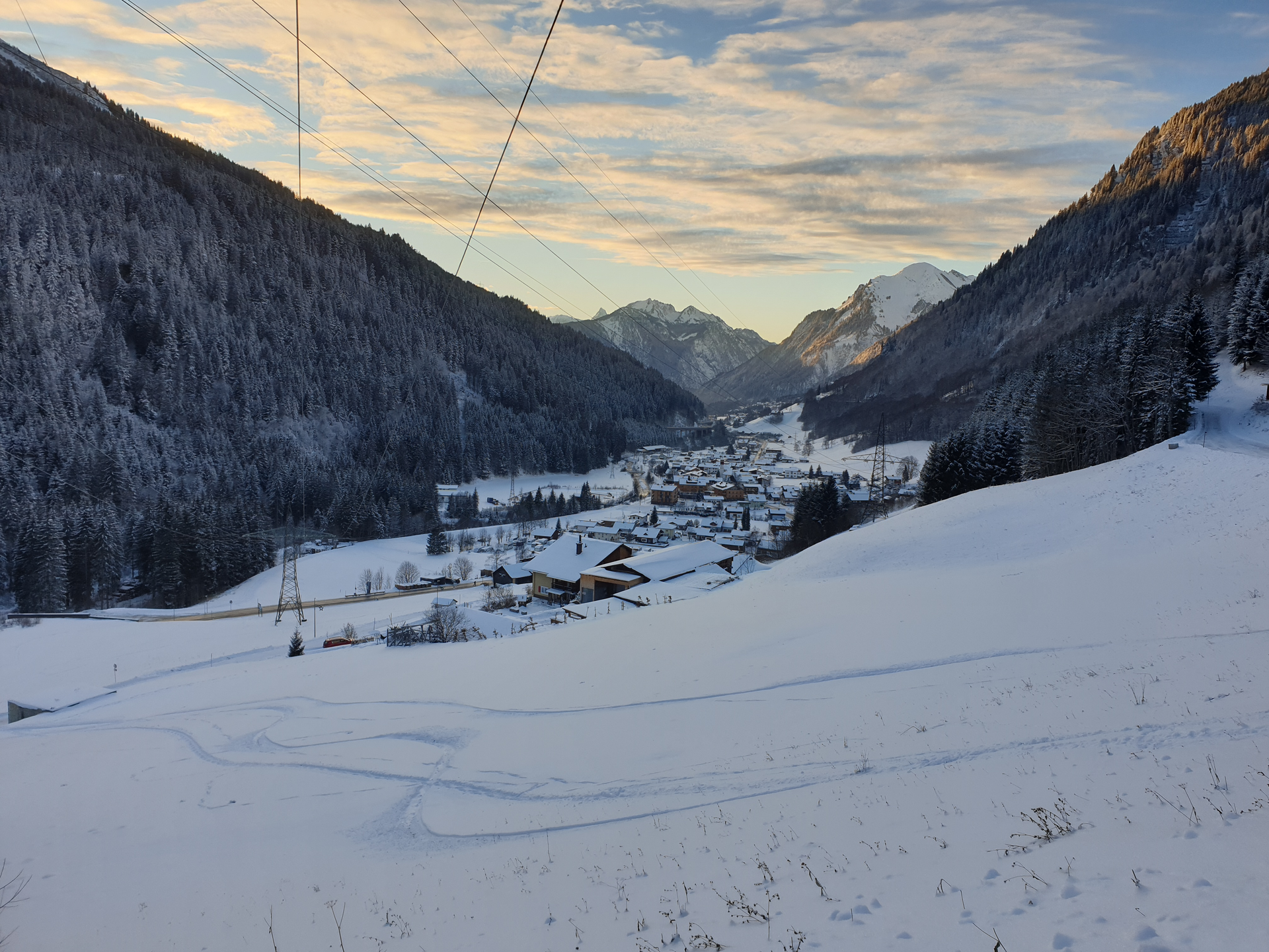 Schöner Winterrundweg ausgehend vom Ortszentrum von Klösterle am Arlberg.