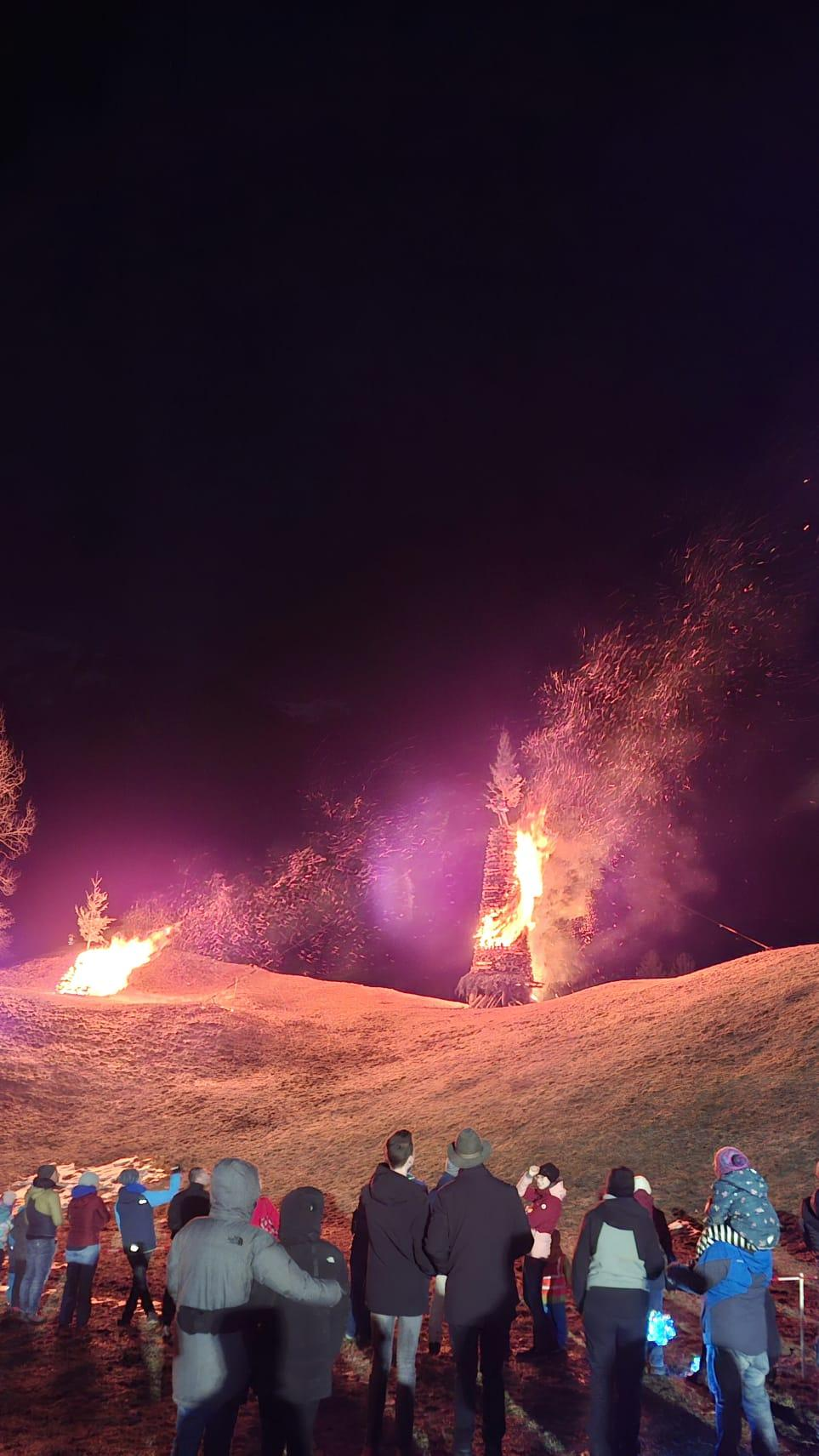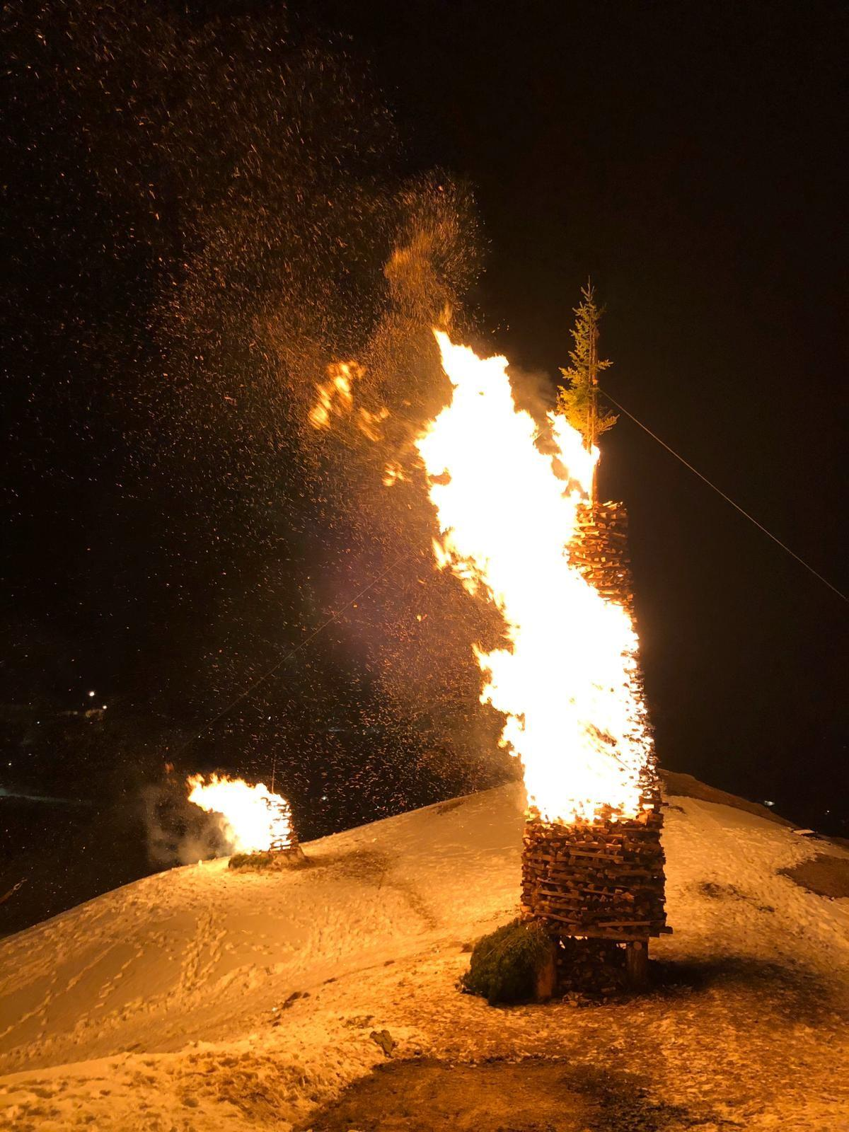 Locals and guests are warmly invited to the bonfire burning at Sonnenbühel in Wald am Arlberg.