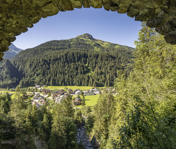 From the railway subway in Pettneu, head north to the cross road and follow it west. Cross the main road in the direction of Vadiesen, continue to Gand and turn right uphill (Obergander Weg) to a path on the slope heading west. From the path, a detour to the church of St. Jakob is recommended. After 700 m, in Bach, head to the old Arlberg road to St. Anton am Arlberg. Continue along a promenade on the northern edge of the village and through a park to a roundabout. Above the car park, walk along a path to the bridge and come to the road subway to the Rendlbahn. The gorge path becomes a path and leads uphill to a driveway. This leads east onto an asphalted road, then left up to the Stiegeneck Chapel (rest area). Continue through mountain forest and small moors to the Arlberg road and turn right to Lake Maiensee, at 1,865 m the highest point of the Way of St. James. Along the lake you come to a road downhill to St. Christoph. The road takes you over the pass and from there along the partially cleared historic Arlberg path to Alpe Rauz. Carefully cross the road and descend via a meadow path into the Rauzbachschlucht gorge to Stuben. After the lift station, take the first path to the left and follow the "Arlbergweg" signs to Langen. At the road, hike to the railway subway, turn right uphill in front of it and follow the "Arlbergweg" again, partly on the old railway line and on the hiking trail to Klösterle.