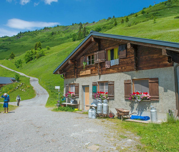 Die Alpe Stafel liegt auf 1.540 m Seehöhe und ist in etwa 30 Minuten zu Fuß vom Parkplatz Faschina aus erreichbar. Hier könnt ihr direkt in der Sennerei neben Bergkäse auch Milch und frische Alpbutter kaufen. Vis á vis der Sennerei steht ein Genussschrank mit den Produkten der Alpe Stafel.