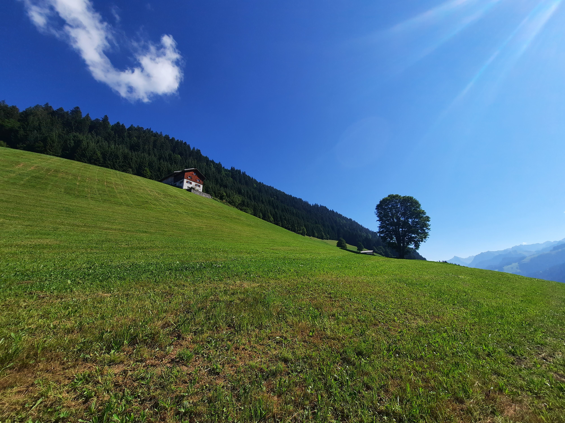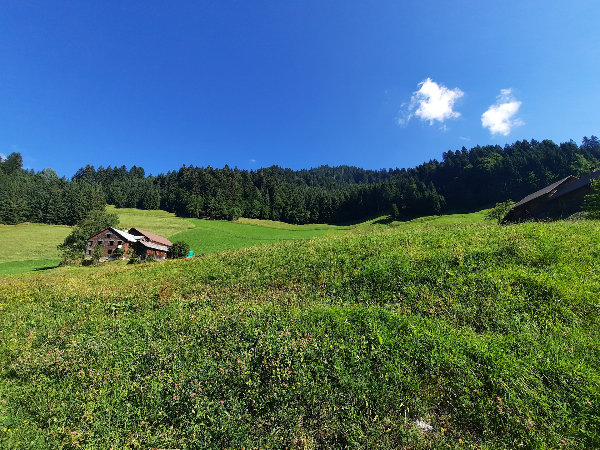 Dieser Weg führt entlang der wieder aufgebauten Höfe bis zum Lawinendenkmal am Friedhof. Im Jahr 1954 ereignete sich die größte Lawinenkatastrophe des Tales. Blons war von den Lawinen stark betroffen. In den letzten Jahren hat sich im Ort sehr viel getan. Neben vielen neuen Häusern mit toller Architektur – angefangen vom Gemeindezentrum und dem darin befindlichen Lawinendokumentationszentrum – wird erläutert, wie sich das Dorf seit der Katastrophe 1954 entwickelt hat. Du wanderst entlang der Straße des Güterwegs nach Oberblons. In Oberblons passierst Du zuerst das Eschtobel, querst eine große Wiese und gelangst dann zur Photovoltaikanlage. Der Weg führt nun durch die Anlage hindurch und mündet in einen Waldweg. Diesem folgst Du talwärts bis Du wieder auf eine Straße gelangst. Von dort über die Straße zurück nach Blons. Zwei Schautafeln entlang des Weges erinnern an die Lawinenkatastrophe von damals.