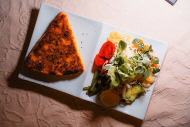 Oben im Gasthaus angekommen, empfängt uns eine gemütlich warme Stube. Der Duft nach frisch zubereiteter Suppe und heißem Tee heißt uns willkommen. Wir freuen uns auf eine wohlverdiente Pause. Wir genießen unser Essen und wärmen uns auf, bevor es wieder hinaus in die klirrend kalte Nacht geht – an solchen klaren Abenden ist gute Kleidung unerlässlich.