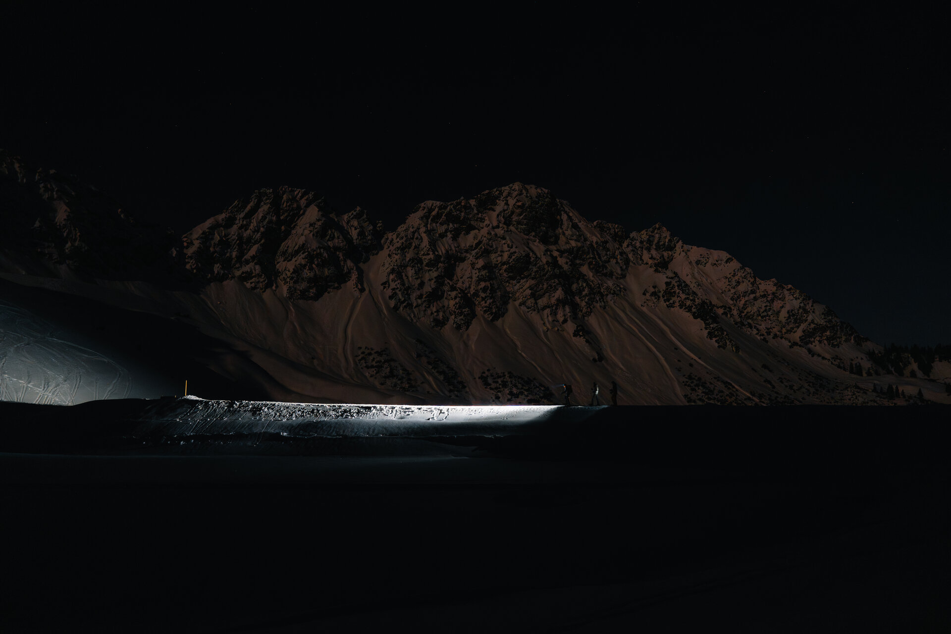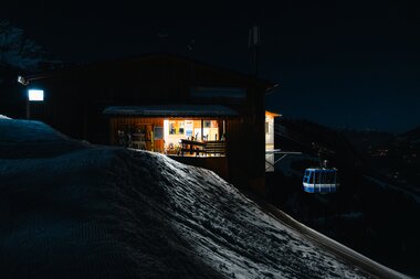 An der Talstation der Seilbahn Sonntag-Stein herrscht eine angenehme Stille. Die wenigen Menschen, die heute Abend den Weg hierher gefunden haben, scheinen, ähnlich wie wir, auf der Suche nach der Ruhe zu sein. Die Seilbahn bringt uns leise surrend in die Höhe. Der Blick auf das in Mondlicht getauchte Tal unter uns ist beeindruckend – aber auf eine unaufdringliche, fast beruhigende Weise.