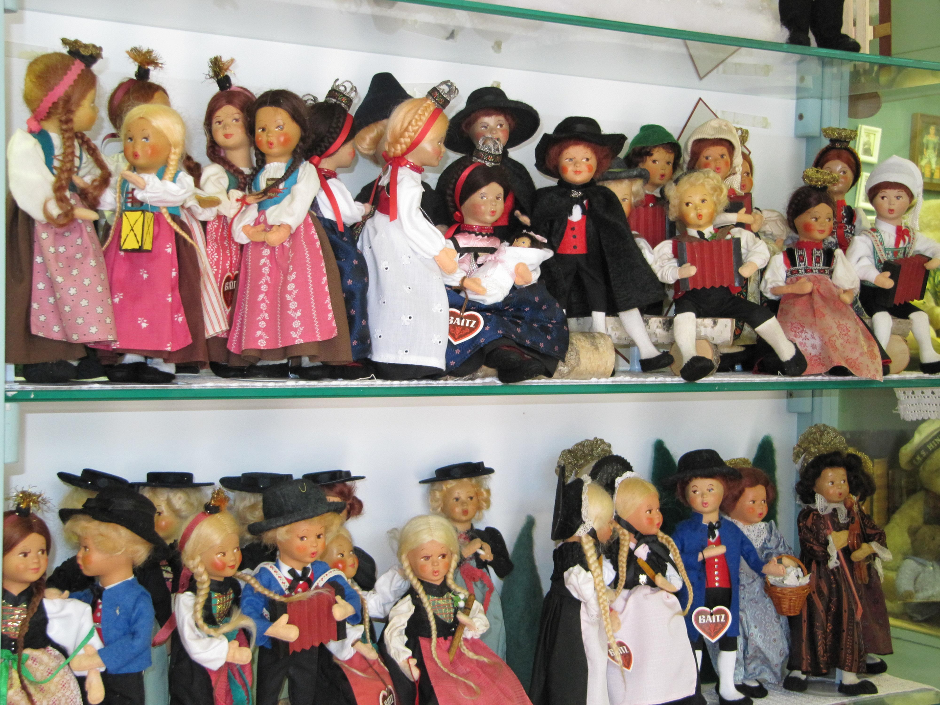 Die Ausstellung umfasst Puppen aus verschiedenen Materialien sowie Kaufläden, Puppenstuben, Teddybären, Spiele und Kasperltheater – alles wertvolle Zeugnisse der Spielzeuggeschichte und früherer Wohnkultur.