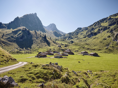 Take the hiking bus from Marul to the Laguzalpe. Then on the alpine path to the Obere Laguzalpe. Now follow the signs Klesenzaalpe via Fürkele to the connecting path Freiburger Hütte - Rote Wand. Rope-secured ascent to Fürkele. Cross to the descent Spitzegga-Klesenzaalpe. Then branch off via the Spitzegga to the Klesenzaalpe. At the Klesenzaalpe you will get an insight into alpine life and can end the first day in a relaxed atmosphere.