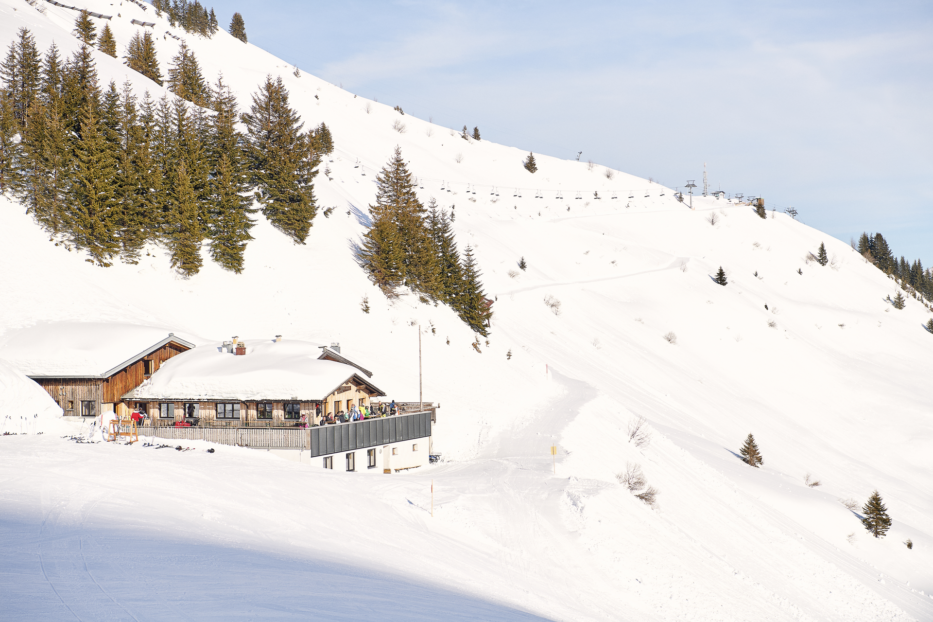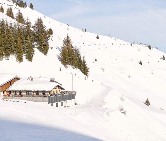 Leisurely winter hike along the ski slope to the Franz-Josef hut in the Faschina ski area.